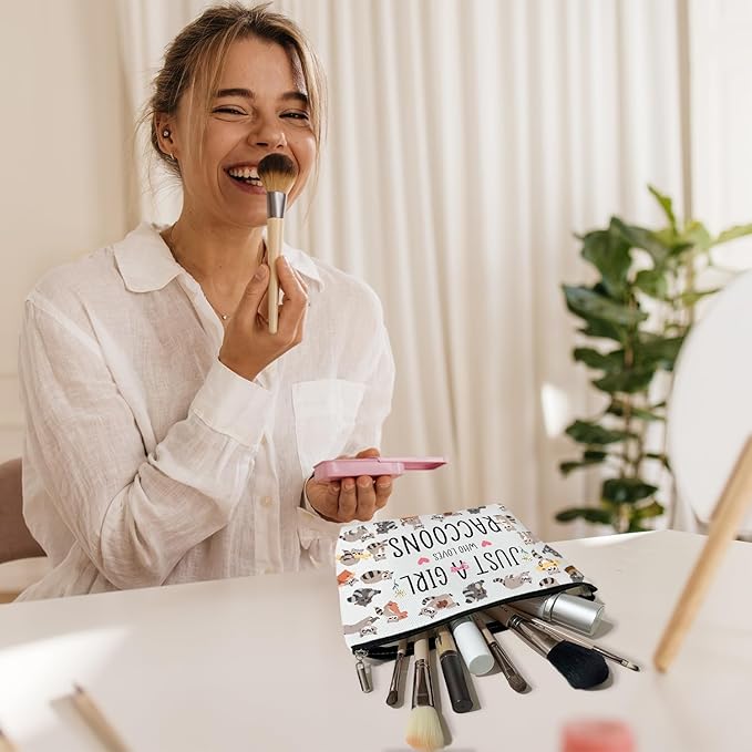Raccoon Makeup Bag - Just A Girl Who Love Raccoons, Raccoon Lover Gifts Birthday Gifts for Sister Friends Breeder Animal Lover, Cosmetic Bag Skincare Bag Toiletry Bag Pouch Travel Accessories -19