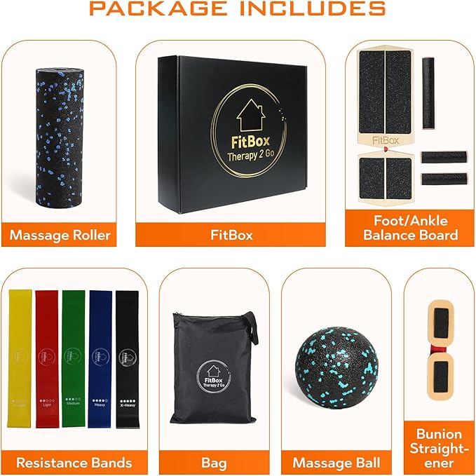 - 5-IN-1 FITNESS ESSENTIALS: This package features an ankle balance trainer, a bunion toe straightener, resistance bands, a mini foam roller, and a massage ball, offering a variety of training methods specially for foot and leg strengthening and rehabilitation