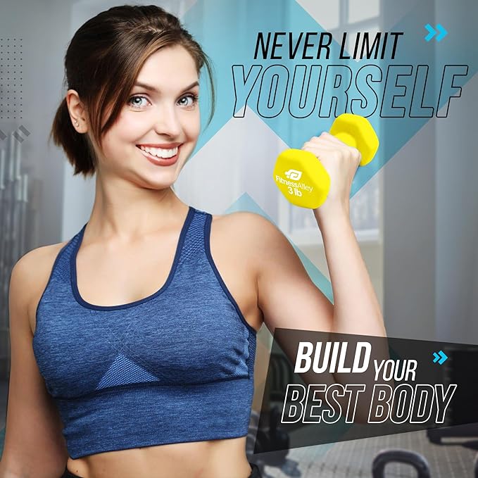 - The box includes 2 Dumbbells that comes in 3LB Size and Yellow Color. Construction is of cast iron, which is of superior quality along with neoprene gripping that allows lifting of heavyweights simpler and easier