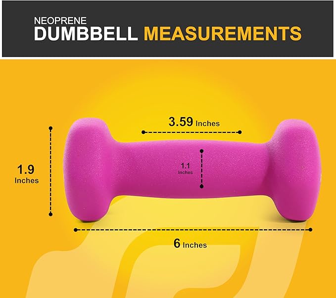 - The box includes 2 Dumbbells that comes in 2LB Size and purple Color. Construction is of cast iron, which is of superior quality along with neoprene gripping that allows lifting of heavyweights simpler and easier