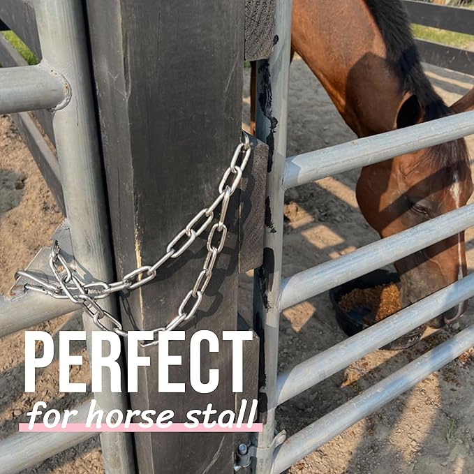 - Heavy Duty Chain - 304 stainless steel chain diameter 5/25" (5mm), chain welding smooth and reliable, up to 550lbs load bearing, can ensure that your horses, goats, cows, and other animals safely stay in the corral.