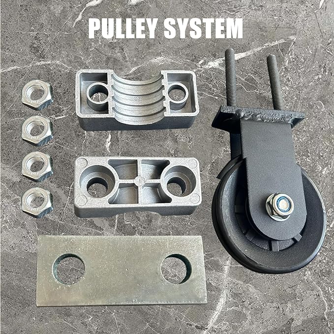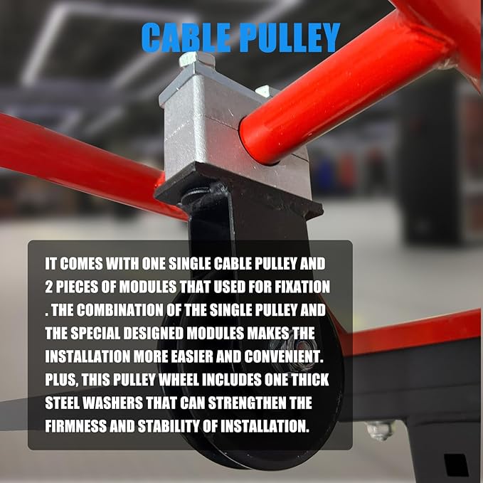 - Great build quality:KORIKAHM gym cable pulley is reliable and in high quality. The U mounting bracket is made of heavy-duty steel. And the wheel is made of high-density plastic which is not easy to break. The load bearing of this single pulley is 220lb.
