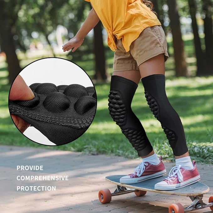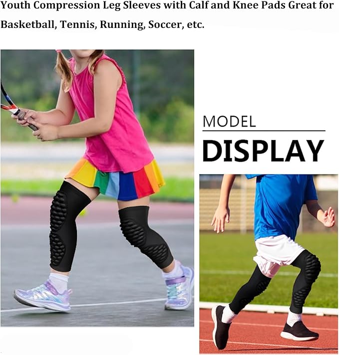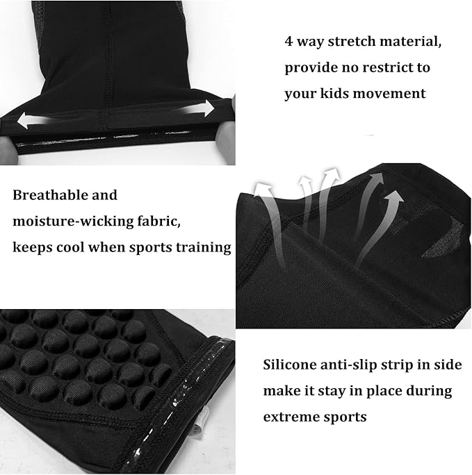 - Long leg sleeve with protective EVA padding on the calf and knee: Thickened EVA pads protect the knee and shin area, Impact resistance and shock absorption would reduce the risk of injury when your kids running or sports training