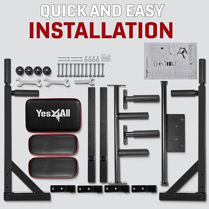 - 2-IN-1 GYM EQUIPMENT: Yes4All multifunctional wall mounted chin up/ pull up bar mix with dip bar may be used for pull ups and dip ups workouts to target different muscle groups.
