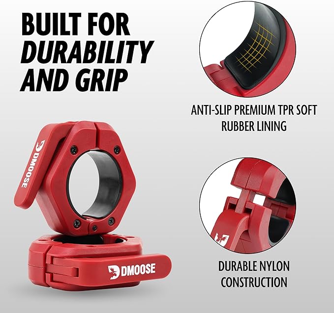 - πππππππ ππππππππππππ ππππ ππππ-ππππ ππππ: Built for durability and reliability, DMoose Barbell Collar is constructed with high-quality nylon polyamide and premium TPR soft rubber lining. The anti-slip grip of the Barbell Clamp ensures your weights stay in place, providing a safe and effective lifting experience. Trust in the robust build to withstand the toughest workouts and last for years, delivering consistent performance.