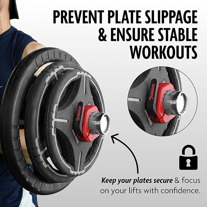 - ππππ-π πππππππ ππππππ π ππ πππππ πππππππππππ: DMoose Quick Release Clamp features a user-friendly design that fits all 2" barbells. Quickly adjust and secure your weights with ease, saving time and keeping your workout momentum strong. Ideal for both home and commercial gyms. Enjoy seamless transitions between sets with these easy-to-use weight clamps, designed for quick and efficient adjustments.