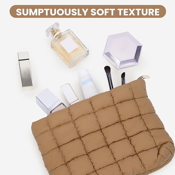 Puffy Quilted Makeup Bag Cosmetic Bags Travel Cute Puffer Solid Toiletry Organizer Pouch Storage Clutch for Women