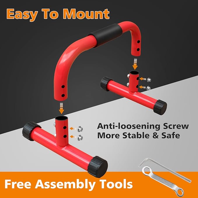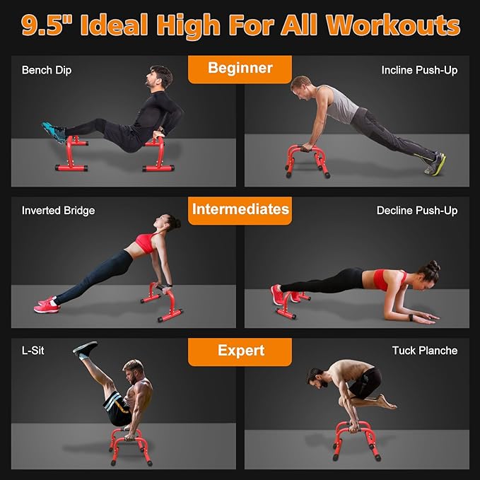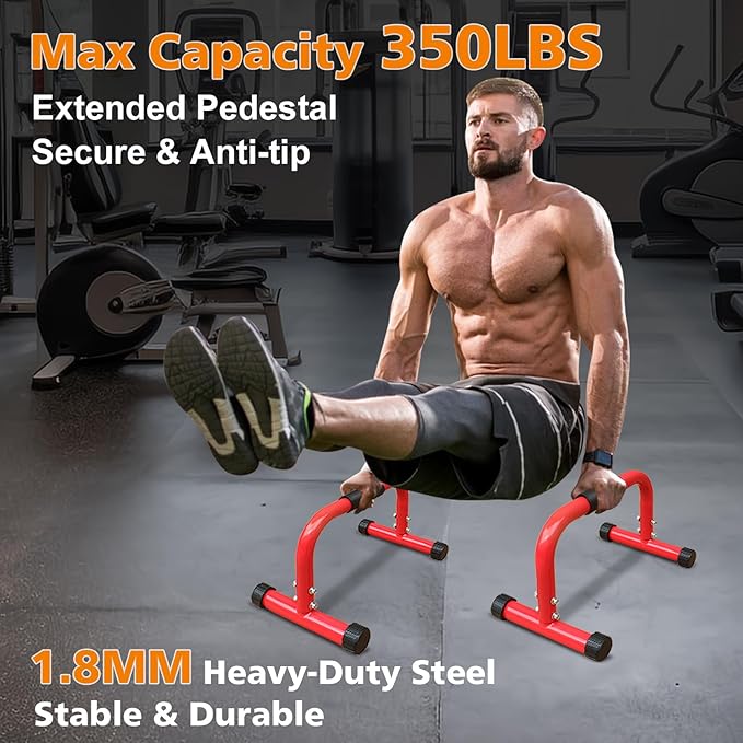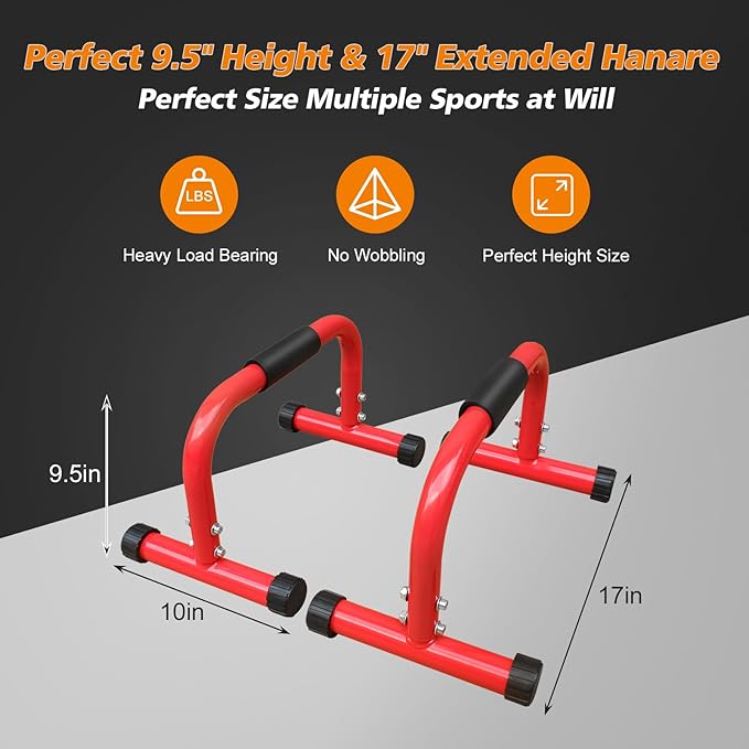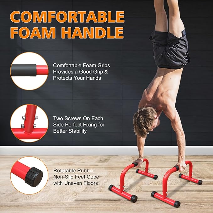 - 💪【Ergonomic Foam Grip】Parallettes bars provide a ergonomic full-coverage foam handle gives you enough grip space. 1.5'' thickened foam is comfortable to grip and reduces hand fatigue. High-density foam effectively prevent sliding and offers excellent grip even with sweaty hands.