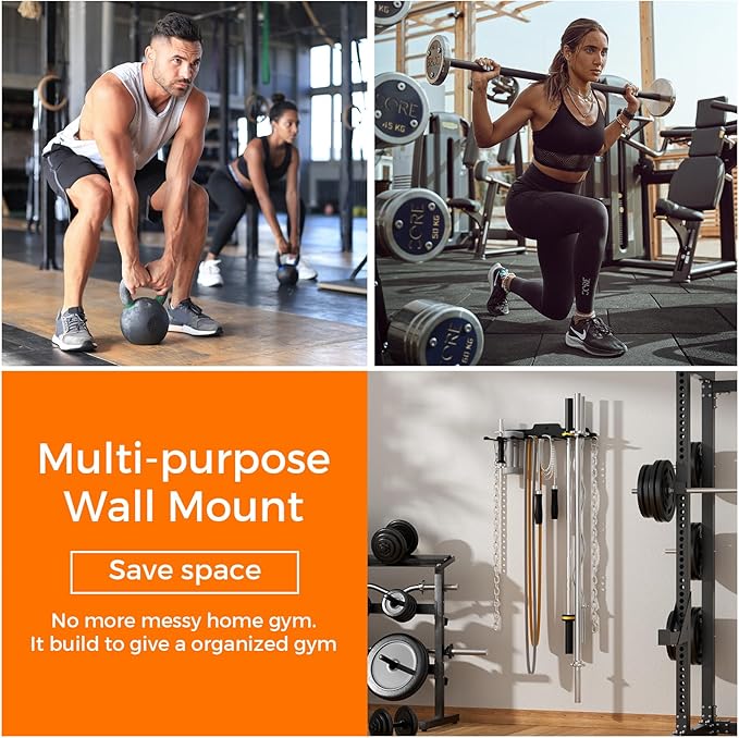 - Protective Pad Designed - The Gym Home Rack Wall-mounted Organizer is sprayed with a matte matte anti-rust layer and comes with a rubber pad to protect your barbell coating.The surface is smooth and durable against rust.Provides good care for your steel bars, and you can use them for a long time
