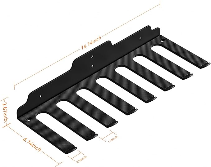 - Sturdy & Durable - The heavy-duty wall-mounted organizer is made of high quality steel plate. Then there is a thick, durable, coarse powder coating on the surface. All the fingers/combs are spaced apart to avoid overlapping, thus protecting your equipment and shelves from scratches