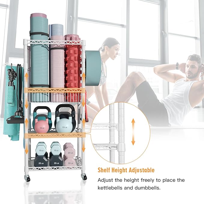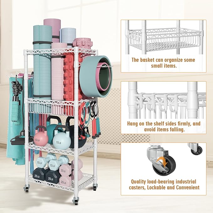 - [Multifunctinal]: The exercise equipment storage is perfect for organizing the workout equipment at home gym, yoga studios, and garage. It allows you to organize exercise mats, yoga mats, foam rollers, yoga blocks, etc