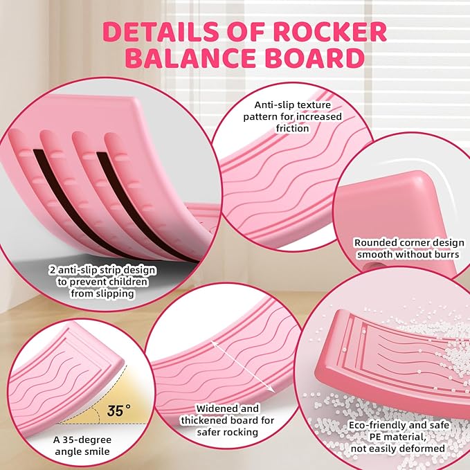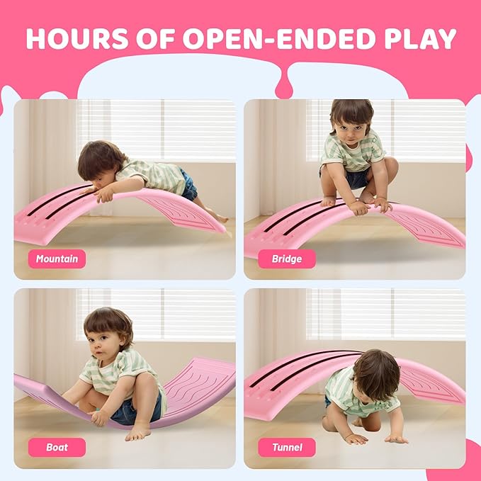 - 【Developmental Benefits】: Open-ended toys are loved by the whole family. This balance board is not just a toy, but also a tool for promoting the development of multiple skills. It stimulates the vestibular system, which is essential for general development and learning. It encourages imaginative play and cultivates creative thinking. Additionally, it helps develop balance, confidence, and body posture. Incorporating it into a yoga routine can enhance its difficulty and strengthen the abs and legs