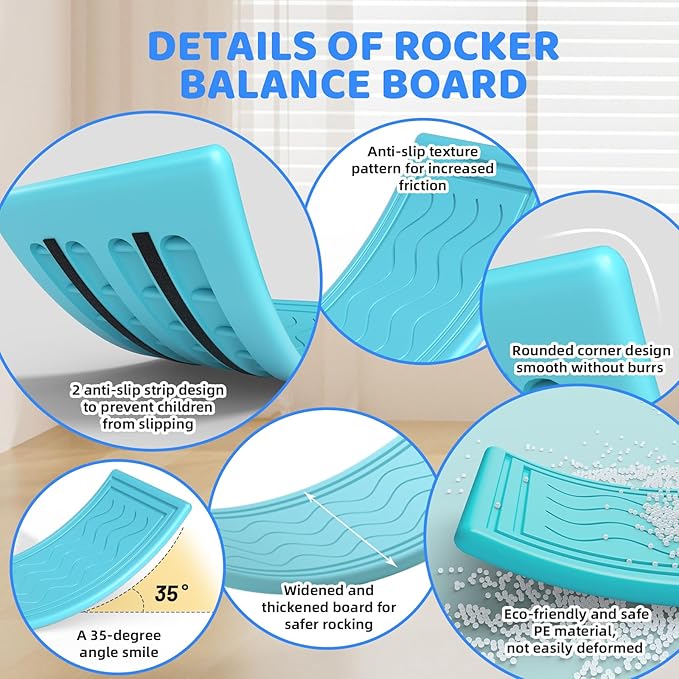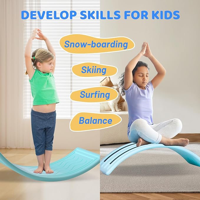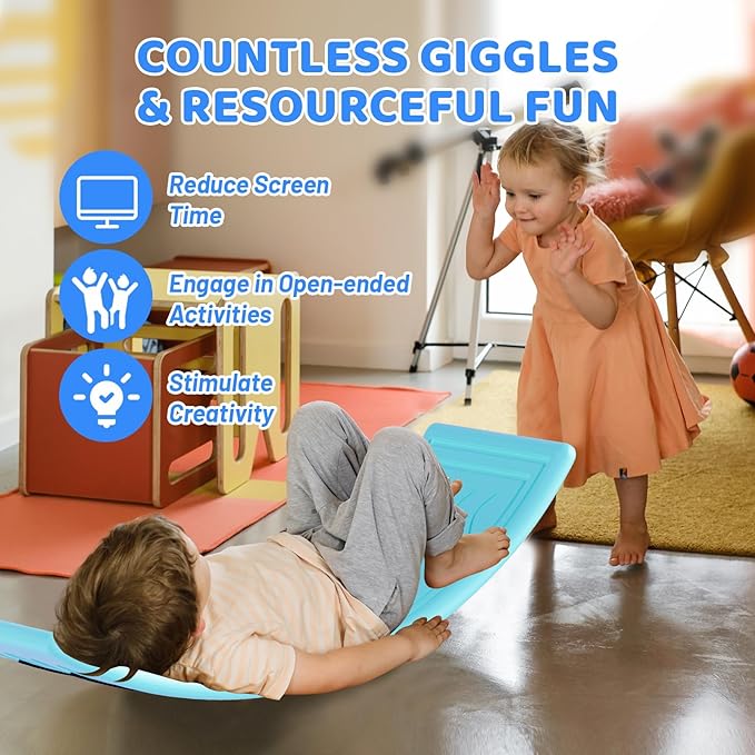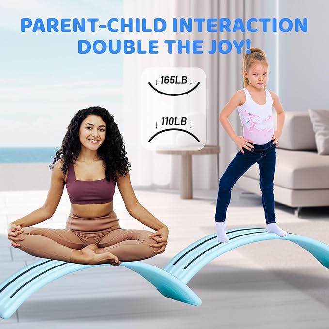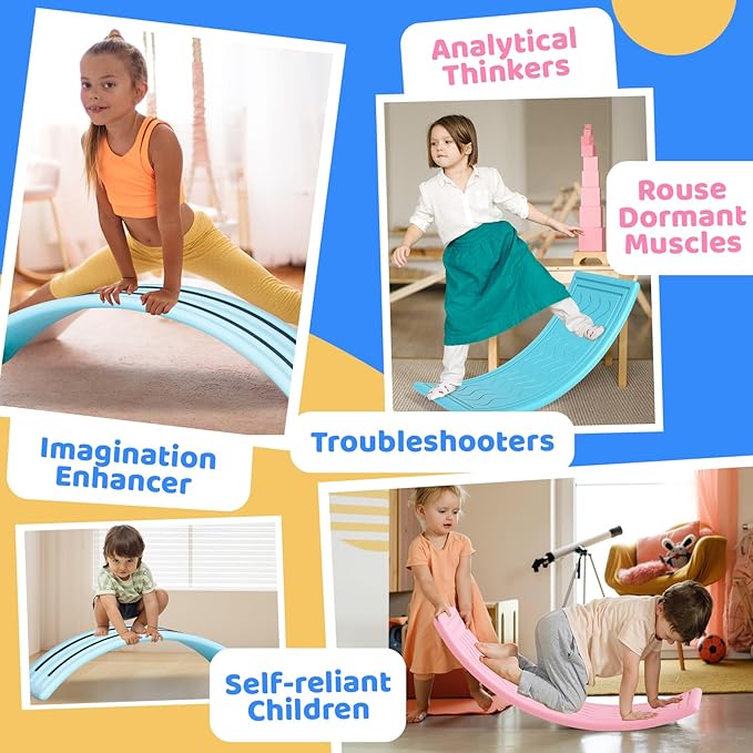 - 【Developmental Benefits】: Open-ended toys are loved by the whole family. This balance board is not just a toy, but also a tool for promoting the development of multiple skills. It stimulates the vestibular system, which is essential for general development and learning. It encourages imaginative play and cultivates creative thinking. Additionally, it helps develop balance, confidence, and body posture. Incorporating it into a yoga routine can enhance its difficulty and strengthen the abs and legs.