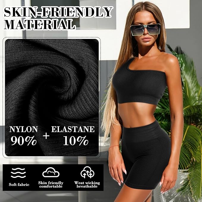 • Pilates Outfit Set: women 4 piece workout sets include 1pcs scoop neck sports bra, 1pcs one shoulder sport top, 1pcs ribbed shorts and 1pcs women leggings, stylish and practical garments designed to bring comfort and functionality to your workouts