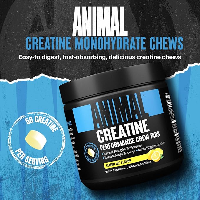 Animal Creatine Chews Tablets - Enhanced Creatine Monohydrate with AstraGin to Improve Absorption, Sea Salt for Added Pumps, Delicious and Convenient Chewable Tablets - Lemon Ice