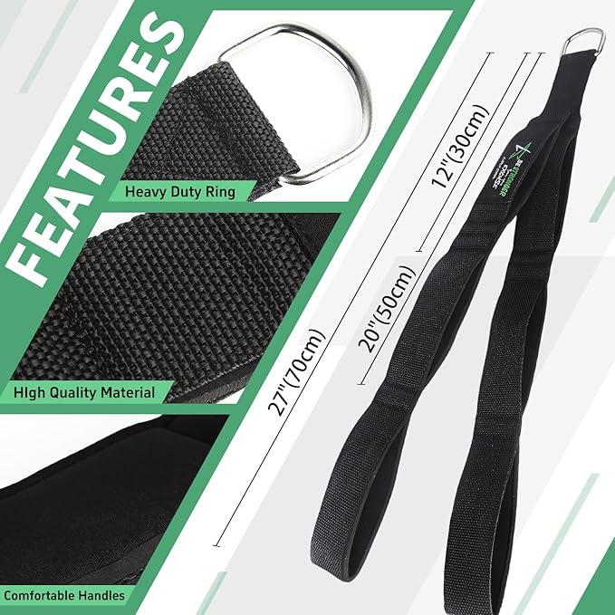 - VERSATILE AND STURDY: Our durable strap with heavy-duty D Ring is compatible with universal gym systems, offering multi-workout versatility. Its three-in-one length design replaces traditional ropes, making it easy to carry for gym or home use