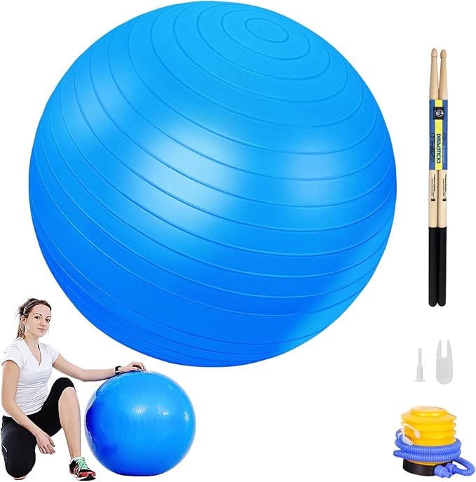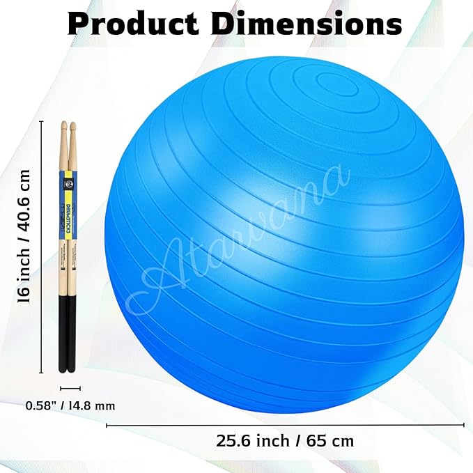 Atarvana Cardio Drumming Equipment Set, Extra Thick Yoga Ball with Pump & Cardio Drumming Sticks with Grips, Aerobic Exercise Ball Drumsticks Workout Set for Stability, Rhythm, Gymnastics