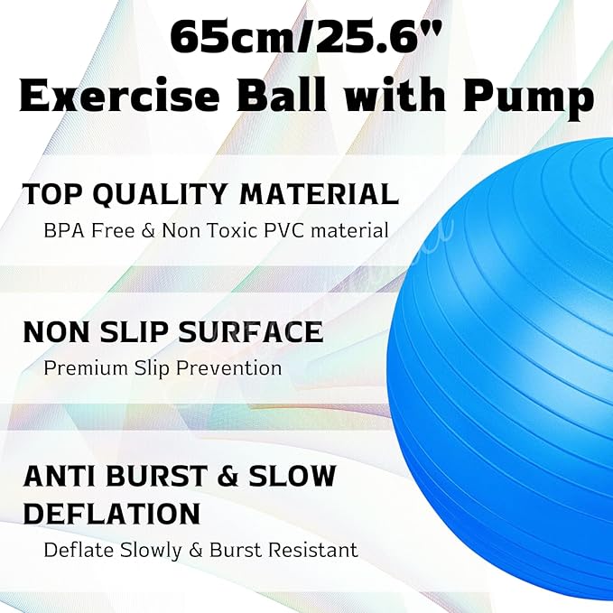 - [๐ก๐ผ๐ป-๐ฆ๐น๐ถ๐ฝ ๐๐ ๐ฒ๐ฟ๐ฐ๐ถ๐๐ฒ ๐๐ฎ๐น๐น] - The balance ball is not picky with the workout venue, and you can use it at home, gym, or outdoors without worrying about slippery problems, as it is made of plastic material and designed with strips on the surface to maximize the friction and safety during fitness.