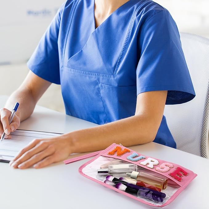 - Large Capacity and Waterproof: the nurse makeup bag is about 12.59 x 8.46 inch/ 32 x 21.5 cm, roomy for storing makeup, stationeries, toiletries and medicine, etc., proper size to be tucked into a handbag or backpack for easy portability yet enough to hold your essentials; Made from PVC and nylon, the clear letter nurse gift bag is waterproof and easy to clean with a damp cloth