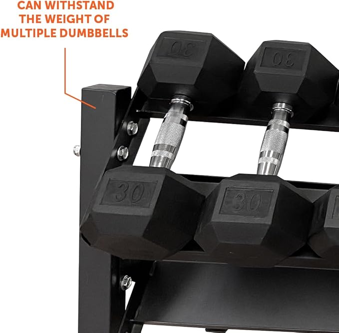 - Efficient Weight Holder Rack - This heavy-duty dumbbell rack is great for neatly storing your dumbbells, maximizing space in your home gym and providing easy access to your fitness weights during workouts.