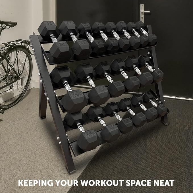 Exercise Workout Storage Dumbbell Rack For Dumbbells Fitness Metal And Rubber Weights (Dumbbell Rack 3 Tier)