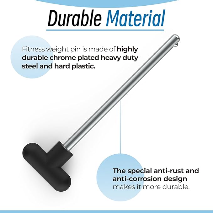 - 【Durable Material】The fitness weight pin is Made of highly durable chrome-plated Heavy Duty Steel. The special anti-rust and anti-corrosion design makes it more durable. Exquisitely crafted, sturdy, and durable.
