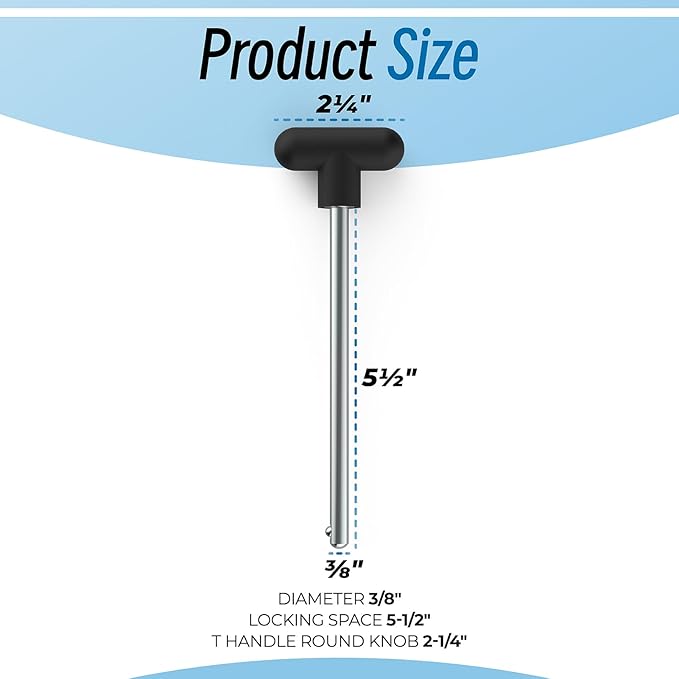 - 【Product Size】3/8" Diameter; 5-1/2" Locking Space; 2-1/4" T Handle Round Knob. The weight lifting pin has a wide range of applications and is suitable for most gyms and fitness equipment.