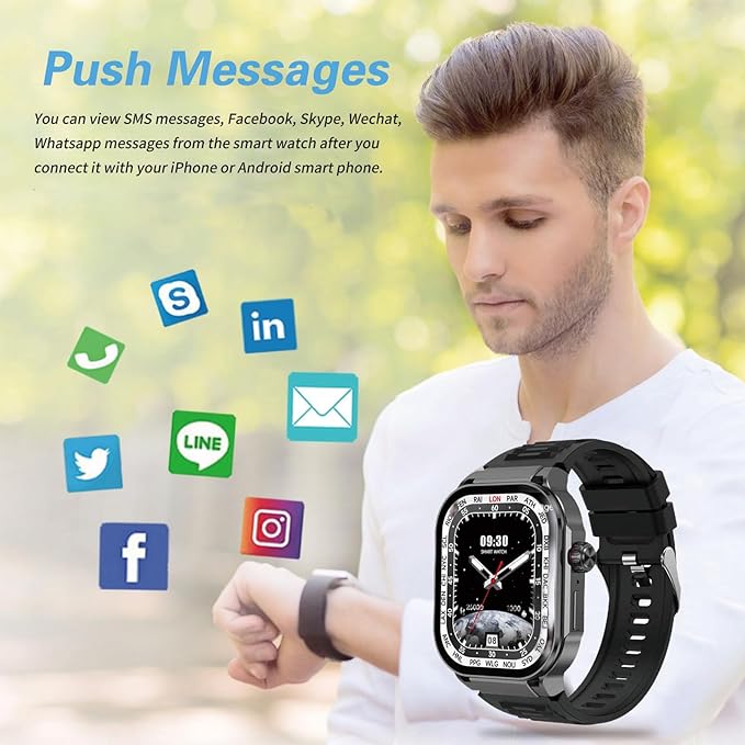 - Bluetooth Calls and Smart Reminder: With functions such as answering and making phone calls on the smart watch, you can stay in touch during exercise, household chores and leisure time after connecting to the mobile phone via Bluetooth. It supports SMS, Facebook, WhatsApp, Twitter and other message push notifications as well as vibration reminders. Important information can be seen with your wrist raised.