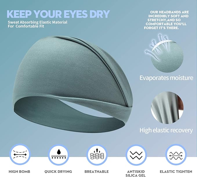 - Soft and Absorbent: Made with sweat-wicking fabric, these headbands keep you dry and comfortable during intense workouts, absorbing sweat effectively.these headbands stay securely in place, preventing them from slipping during vigorous movements.