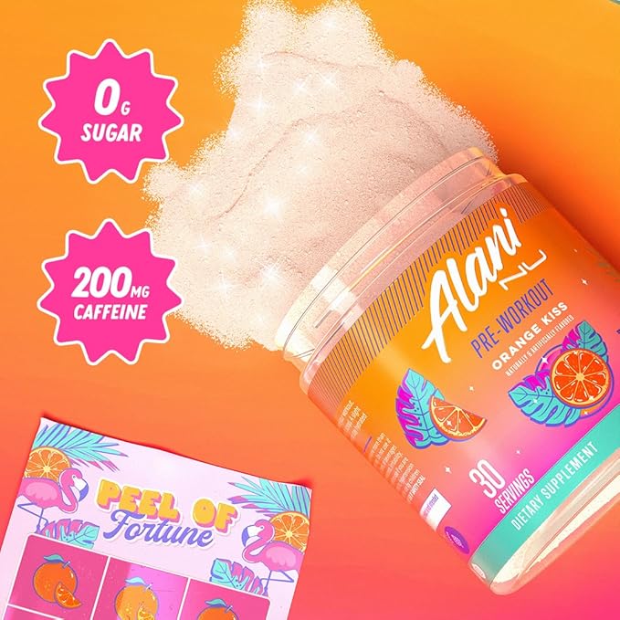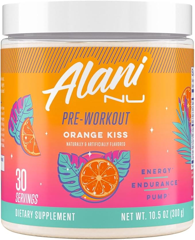 Alani Nu Pre Workout Powder Orange KISS, Amino Energy Boost, Endurance Supplement, Sugar Free, 200mg Caffeine, L-Theanine, Beta-Alanine, Citrulline, 30 Servings