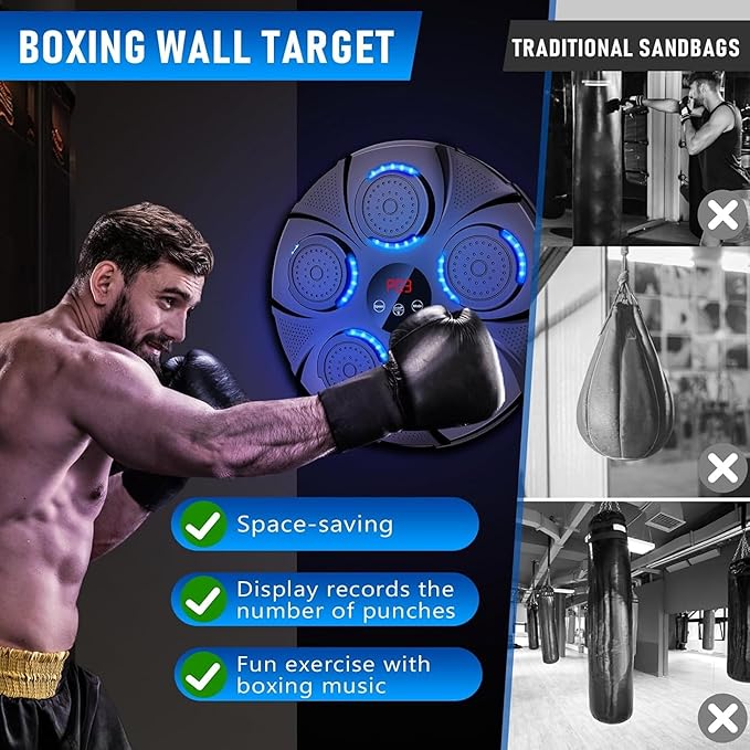- ✔️【Redefine Boring Boxing Training】- This boxing machine wall mounted music is a new and fun way to train, With sounding punch boxing you can hear fun interactive sounds when the boxing target lights up and you hit it with your fist. The sound punch smart counting function on the display keeps track of every boxing, creating a more energized and exciting workout environment