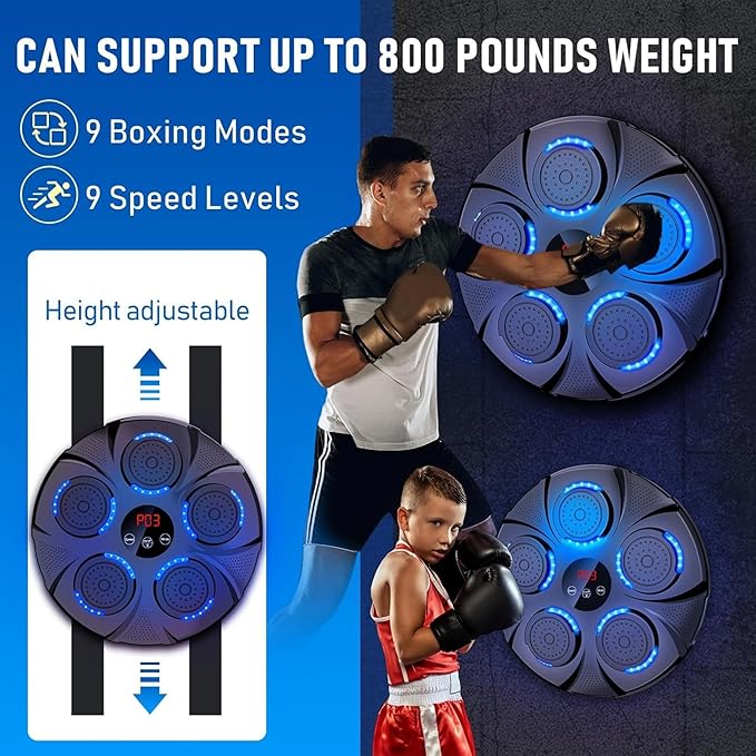 - ✔️【Multiple Mode Selection】- maquina de boxeo musical pared exercise machine can be offered in 9 different modes, each of which will correspond to a different speed. This makes the music boxing machine for adults, kids. And the high-quality material protects your hands from injury.