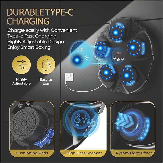 - ✔️【Intelligent Music Boxing Machine】- The music punching machine has been optimized for sound quality by professional audio engineers, and uses the latest Bluetooth 5.3 technology to connect to your device stably and quickly, so you can enjoy your favorite music to motivate you to train. Beat punch musical boxing is smart