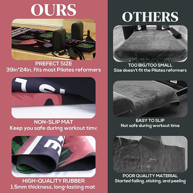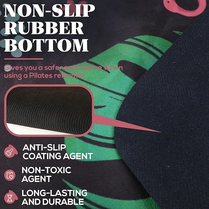 - NON-SLIP RUBBER BOTTOM: The bottom of our Pilates mat for reformer is covered by a layer of anti-slip coating, which is long-lasting, non-toxic, and invisible. The anti-slip coating agent increases the grip between the Pilates reformer mat and the surface, giving you a safer experience when using a home Pilates reformer or gym Pilates reformer.