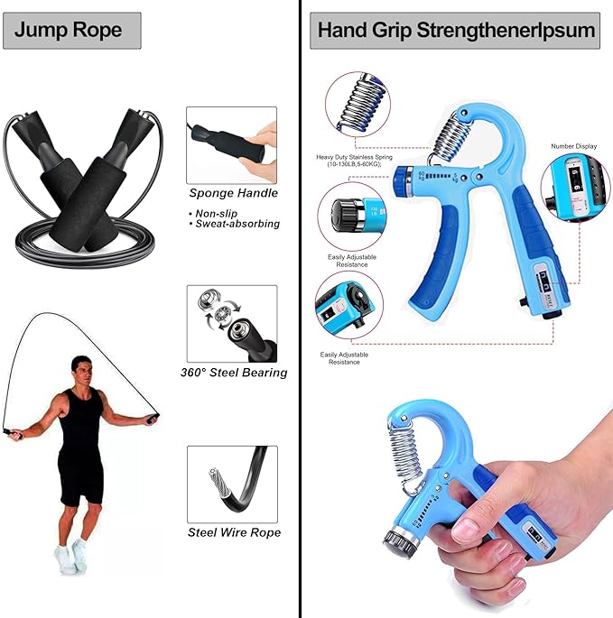 - 【Endurance and Coordination with Jump Rope】Take your endurance and coordination to new heights through jump rope training. Elevate your heart rate, torch calories, and tone key muscle groups for a well-rounded workout.