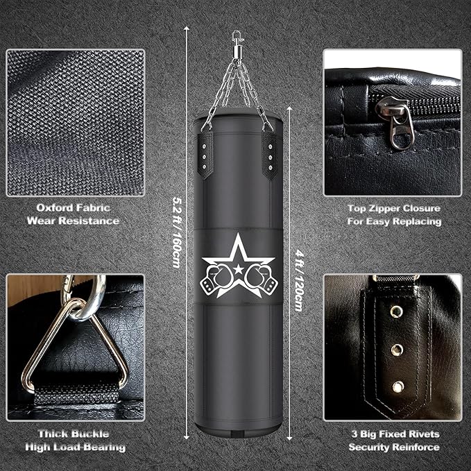 Punching Bag for Adults,Heavy Boxing Bag Set 4ft/120cm,Boxing Training Equipment Set for MMA Kickboxing Boxing Karate Home Gym Training(Unfilled)