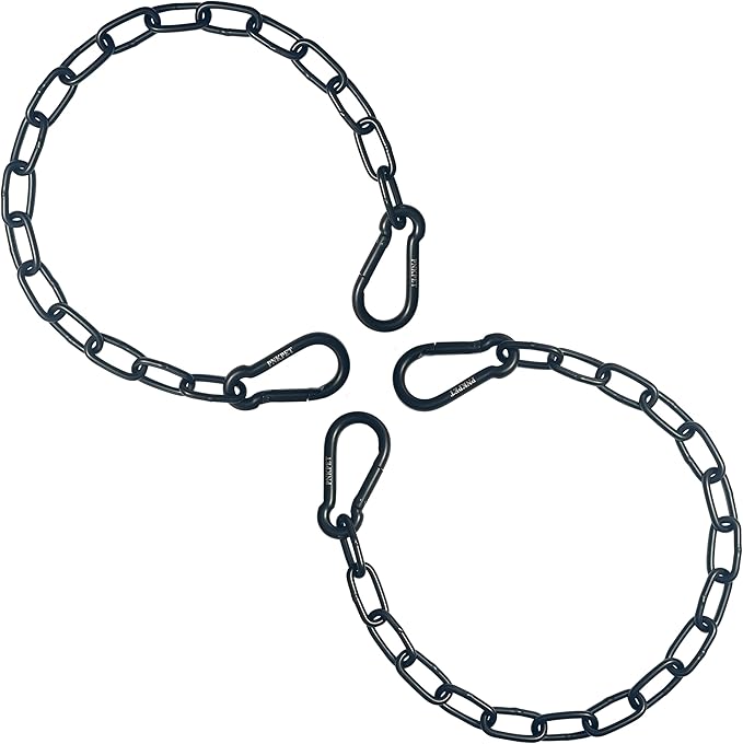 - Shopping Guide - The product includes two 24-inch long stainless steel chain and four M7 carabiners. The color is black, and it weighs 1.19 pounds. Please feel free to contact us if there is any missing product accessories or any problems in use.