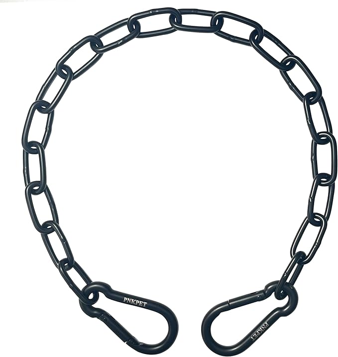 - Shopping Guide - The product includes 24-inch long stainless steel chain and two M7 carabiners. The color is black, and it weighs 10 ounces. Please feel free to contact us if there is any missing product accessories or any problems in use.