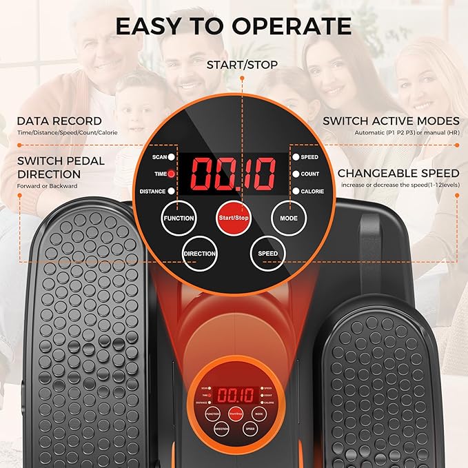 - 【AUTO AND MANUAL MODES】Just one button to start GUGTTR under desk elliptical machine! Adjust modes on the LCD screen or the included remote control: Auto mode (P1, P2, and P3 modes) and Manual mode (12-levels speed) to satisfy your different needs. Pedals can forward and backward to target different muscles
