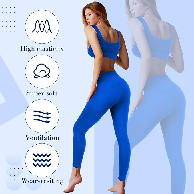 - Stretchy Material: yoga workout set is made from lightweight ribbed fabric, breathable and comfortable; The material designed to wick sweat away from your body, ensuring you stay dry and comfortable throughout your yoga session or Pilates class