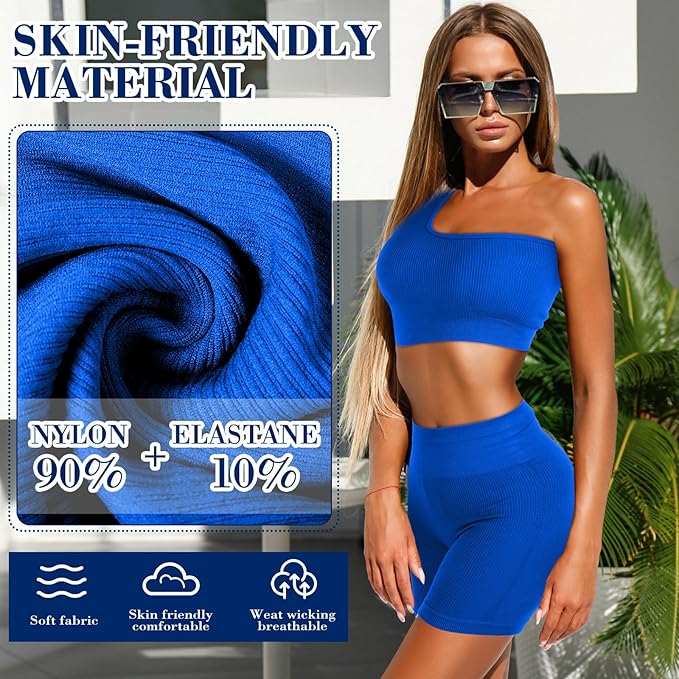 - Pilates Outfit Set: women 4 piece workout sets include 1pcs scoop neck sports bra, 1pcs one shoulder sport top, 1pcs ribbed shorts and 1pcs women leggings, stylish and practical garments designed to bring comfort and functionality to your workouts