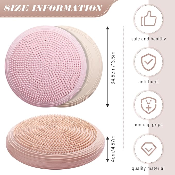 - Serviceable and Lasting: each balance disc is made of quality PVC, reliable and sustained, not easy to deform, tear or break, and can be kept for a long time, you can use it with ease and confidence; Equipped with steel needles, you can use the pumps conveniently to pump
