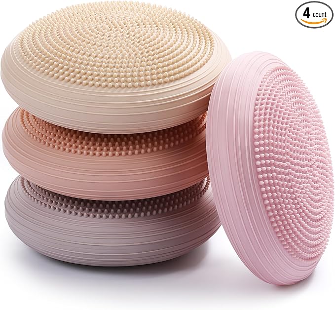 Libima 4 Pcs Wiggle Seat Inflated Wobble Cushion for Sensory Kid 13 Inches Balance Disc Flexible Seating for Classroom Sensory Pad for Chair Wiggle Cushion with Needle Pump