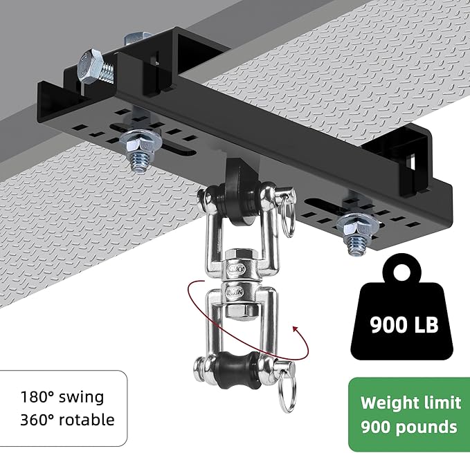 - 【Optimized Design】: 1) Punching bag hanger U-shaped groove structure design,could hold up to 2000 lbs.+ weight capacity. 2) Heavy bag mount with 360°+180°: 360° swivel+180° swing set hook creating a wider range of using like hanging heavy boxing punching bag,playgrounds swing set, porch swings,hammock chairs, indoor swing nd so on
