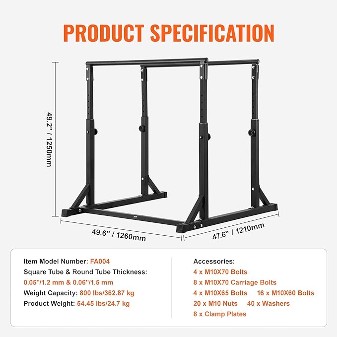- Sturdy Construction: Our dip bar boasts tough construction, using thickened steel tubes (0.05"/1.2 mm thick square tube & 0.06"/1.5 mm thick round tube) for rock-solid reliability. It's built to handle up to 800 lbs/363 kg effortlessly, ensuring a stable and safe workout session every time. With its premium coating, it stays vibrant and durable for the long haul.