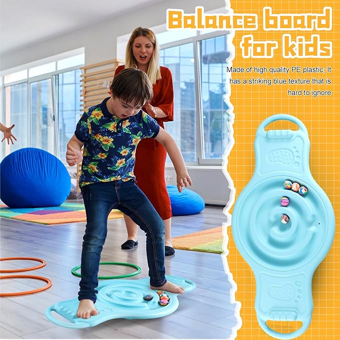 - Versatility in Fun and Exercise: our wobble balance board is a play accessory that doubles as an exercise tool; Ideally suitable for kids, it's designed to enhance the patience, balance, coordination, muscle strength, and core stability; Equipped with 5 balls, this balance board allows kids make the balls reach the center through the notched path; Just slip it into your daily routine for a fun filled exercise experience