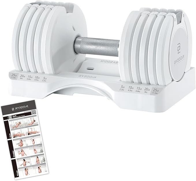 - CONVENIENT AND SPACE SAVING: Fixed length on adjustable dumbbells is never a problem for BYZOOM FITNESS. The exclusive patented weight selection mechanism allows you to have an accurate weight and adjustable length.