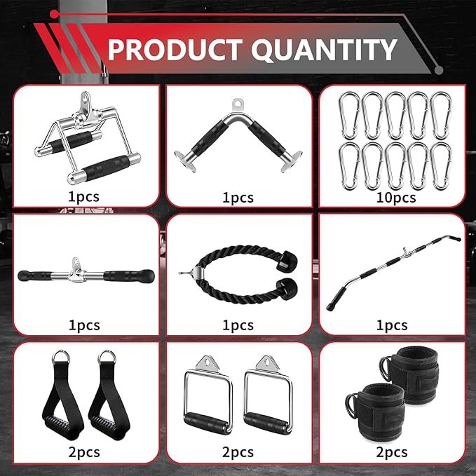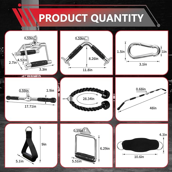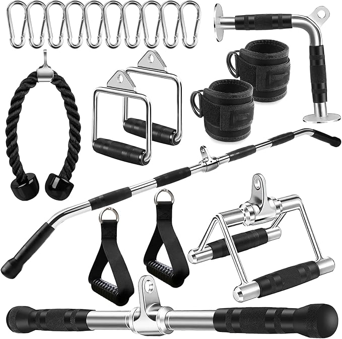 - LAT Bar Cable Attachment with Rubber Handgrips, Deluxe Heavy Duty Solid Curl Bar Revolving Hanger Home Gym Cable Attachments