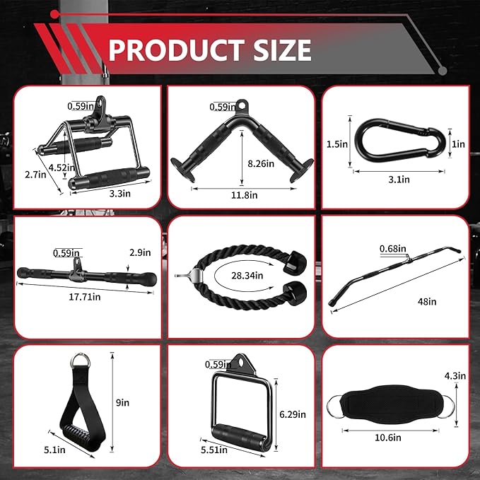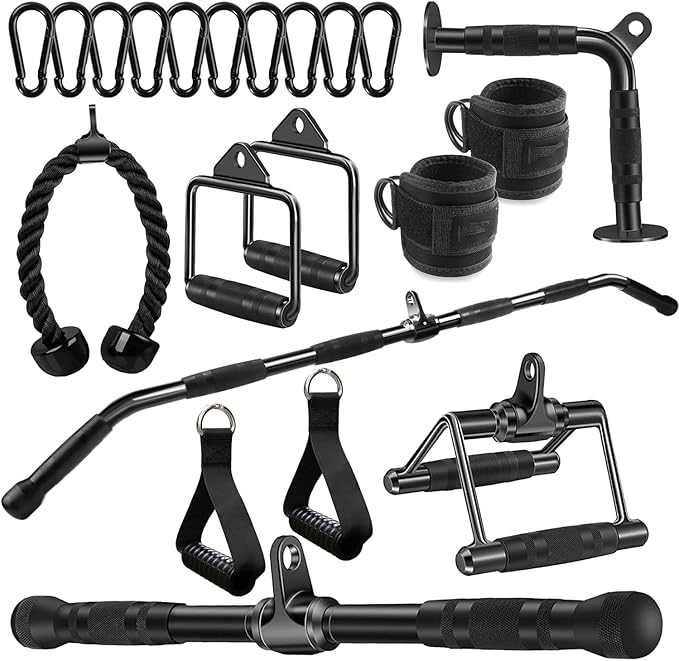 - LAT Bar Cable Attachment with Rubber Handgrips, Deluxe Heavy Duty Solid Curl Bar Revolving Hanger Home Gym Cable Attachments