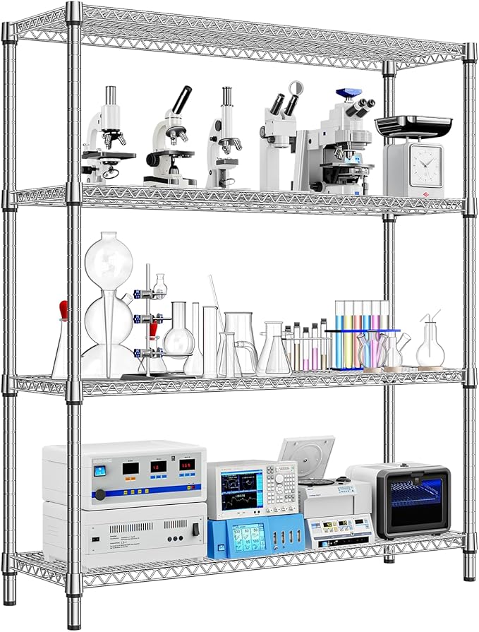4 Tier Storage Rack Metal Wire Shelving Unit, Storage Standing Shelf Organizer for Laundry Bathroom Kitchen Pantry Closet Garage Basement Utility Room, Chrome 17.7" D x 59.1" W x 70.4" H